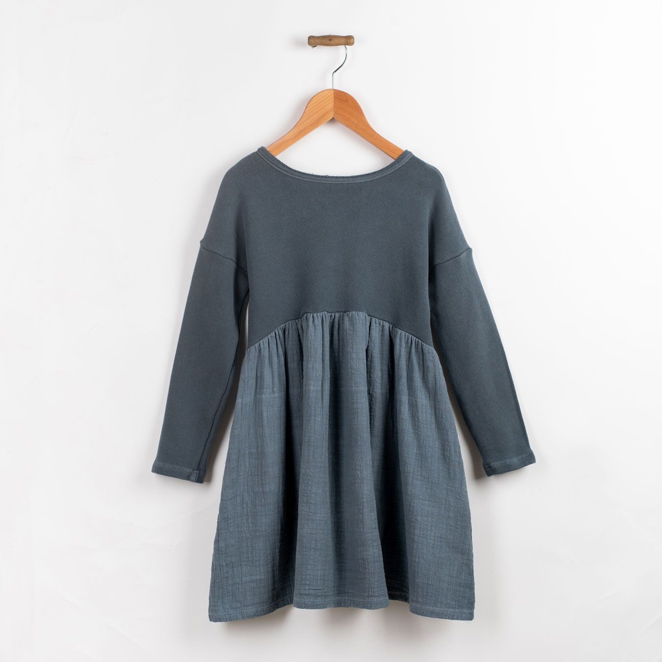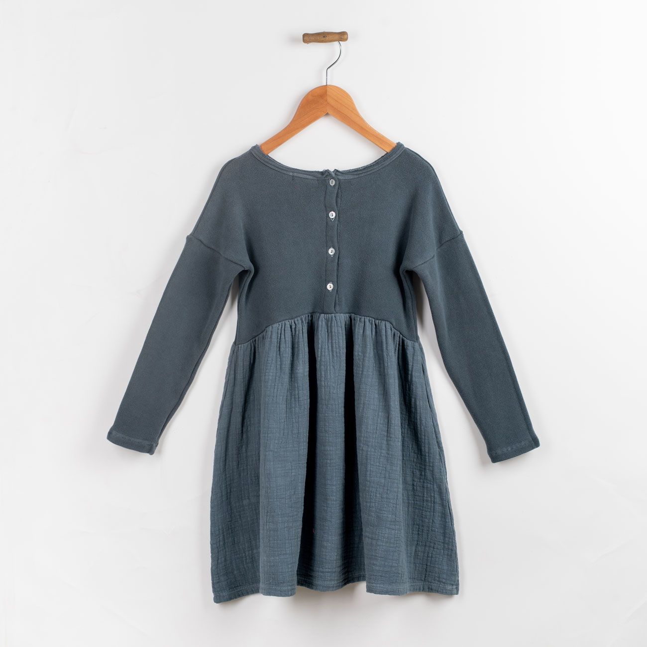 Vestido manga larga color azulgris. Vestido de 100% algodón con felpita y bambula de invierno abotonado por la espalda.